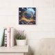 Giraffes embracing love beneath a moonlit sky square wall clock