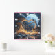 Two graceful giraffes stand serenely in a tranquil landscape, surrounded by glowing heart-shaped trees. The bright moon casts a magical light, creating an enchanting moment in nature.