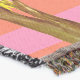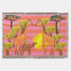 Colourful drawing of a camel, giraffes and trees on stripes background. Vivid design on Throw Blanket.