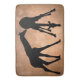 A fun image featuring giraffes in silhouette on a buckskin background.
