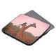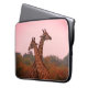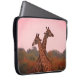 Giraffes standing in mopani trees with pink sky laptop sleeve