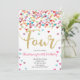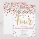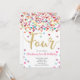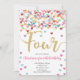 Girl 4th Birthday Hearts Confetti Rainbow Glitter Invitation