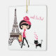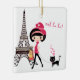 Girl and Cat in Paris Eiffel Tower Christmas Ceramic Ornament