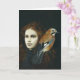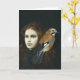 This card is illustrated with a young Victorian lady with a jay perched on her shoulder.