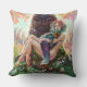 Girl and Magicfox fantasy meadow art monogram Cushion