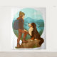 Girl and Mountain Dog Adventure Illustration Tapestry
