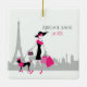 Girl and Poodle in Paris Eiffel Tower Christmas Ceramic Ornament
