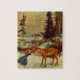 Girl and Reindeer Postcard Jigsaw Puzzle