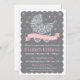 A cute lace style baby buggy (pram / stroller) decorated with baby birds and swirls of vines completes this modern baby shower invitation with a snowflake background. In Pink and Grey. Very sweet and easy to customise with your own text. Original Illustration by pj_design. Please check my store for more like this.
