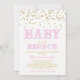 Baby shower brunch invitation with sweet whimsical baby brunch words on a gold glitter background. This pink and gold girl baby shower brunch invitation is easily customised for your event by simply adding your details in the font style and colour and wording of your choice. You can also change the background colour. This is a printed design with no real glitter.