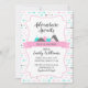 Girl Adventure Baby Shower Invitation in pink, turquoise and grey colours with arrows and mountains