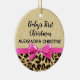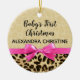Girl Babys First Christmas Leopard Print Pink Bow Ceramic Ornament