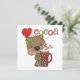 A cute brown girl teddy bear with a cup of cocoa with whipped cream and peppermint canes and a red heart that signifies her love of cocoa on holiday T-shirts, magnets, cards, stickers, tote bags, sweatshirts, keychains, ornaments, and more! If you love teddy bears and cocoa you'll love this cheery holiday design!