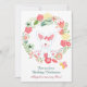 ~Personalised Cute Bunny Rabbit Sitting in a Wreath with Flowers, Butterfly and Carrot First Birthday Party Invitation for Girls. Great invite for spring, summer and the Easter holiday.