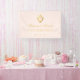 The background is blush pink. There is a faux gold foil vintage crest with a cross in it above the text. The message "Welcome to [Name]'s" is written in an elegant calligraphic script, the rest in caps. All text is golden.
