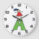 Girl Dancing on Green Letter A Fun Alphabet Large Clock