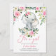 Girl Elephant blush pink flowers greenery foliage Invitation