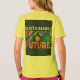 Girl enjoys wearing a chuckle master T-shirt, Also it promotes environment protection written on the backside.