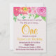 Girl First 1st One Birthday Party Invite / Floral 1st Birthday Invitation Girl / Pink and Gold First Birthday Invite / Flowers Watercolor