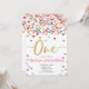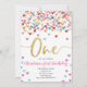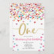 Girl First Birthday Hearts Rainbow Shower Glitter Invitation