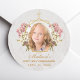 Girl First Communion Photo Floral Pink Orchid Gold Classic Round Sticker