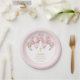 Girl First Communion Pink Bow Floral & Gold Cross Paper Plate