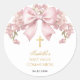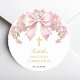 Girl First Communion Pink Bow & Gold Cross Floral Classic Round Sticker
