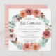 Girl First Communion Rose Gold Blush Floral Wreath Invitation