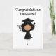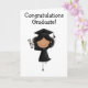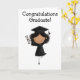 Graduation Girl Folded Card. Dark Haired Girl in Black Cap and Gown Jumping in the Air with Diploma. Graduation Card. Customizable. Multiple Sizes.