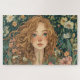 This pretty jigsaw puzzle features a girl with tangled brown hair surrounded by flowers. It would make a beautiful gift for a jigsaw enthusiast who loves gardens.