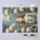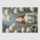 Decoupage paper featuring a young woman amid hydrangeas, exuding elegance reminiscent of Waterhouse's style