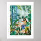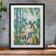 Girl in greenhouse reading illustration poster