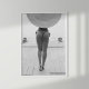 Capture the timeless allure of summer with the "Girl in Hat on the Beach Black and White Print." This stunning black-and-white photograph features a beautiful woman with an elegant figure, captured from behind as she strolls along the beach. She wears a chic bikini and a wide-brimmed straw hat, the brim dramatically extending to her slim waist, adding a touch of sophistication and mystery to the scene.
