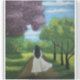 Girl in White Dress A girl in a white dress walking down a path lined with green and purple trees