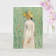 Girl in White (1890) | Original artwork by Dutch post-impressionist artist Vincent van Gogh (1853-1890). The painting depicts a woman wearing a white dress and yellow straw hat, standing in a soft green field scattered with red flowers.