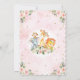 This feminine design features a group of adorable jungle animals surrounded by gorgeous watercolor blush pink roses and gold glitter confetti