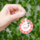 Delightful pink and white baby shower keychain with a balloon, a sweet keepsake for welcoming a baby girl.