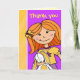 Cute modern graphic girls after party thank you card. Girl clutching her lucky white bunny. Personalise this card with the thank you message of your choice. Original design by Sarah Trett.