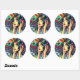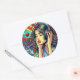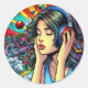 Girl Listening to Music on Headphones Psychedelic Classic Round Sticker