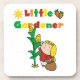 A little blonde girl looks up to see the top of the corn stalk growing in her garden on this cute and colourful gardening design on bibs, burp cloths, blankets, keepsakes, plates, pillows, and many other items.