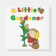 A little blonde girl looks up to see the top of the corn stalk growing in her garden on this cute and colourful gardening design on T-shirts, mugs, mousepads, stickers, and other gardening items.