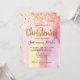So trendy, this invitation features a pink watercolor background and faux gold lettering and confetti falling in the background.