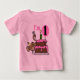 A cute first birthday design on first birthday Tshirts, bodysuits, cards, postage, magnets, and other birthday apparel and gift items with a monkey, a chocolate cake with pink trim, a pink balloon, and text that reads "I'm 1"!