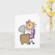 Note card or greeting card featuring a stick figure girl at the computer.