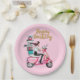 A girl riding a pink scooter carrying lots of presents. "Happy Birthday" text.