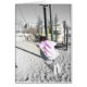 Girl on swing in black and white photo with pastel pink and yellow coming through in the centre. Girl is swinging in the park alone, image will bring back memories of being young and having fun on a swing in the park. This card will be a great addition to your collection for whenever you need to send a note to someone special.