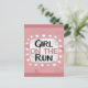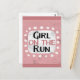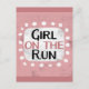 "Girl On The Run" is a fun text design with a white accent shape surrounded by white whimsical textured dots.
