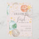 Adorable space birthday invitation with pastel planets, moon, stars and faux gold accents. Perfect for a girl outer space galaxy themed baby shower.