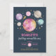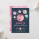 Celebrate your child's special milestone with this magical outer space themed birthday invitation. Featuring imaginary planets, moon and stars in pink, purple, mint and gold colorway.