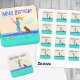 RSVP envelope seals, or stickers, for summer party invitations that have a paddle-boarding, or water sports theme. A girl paddles her board with a brown dog onboard. The tropical turquoise water contains a sea turtle who is swimming alongside the purple board. This is my own illustrated design. Round and square shaped stickers work best.